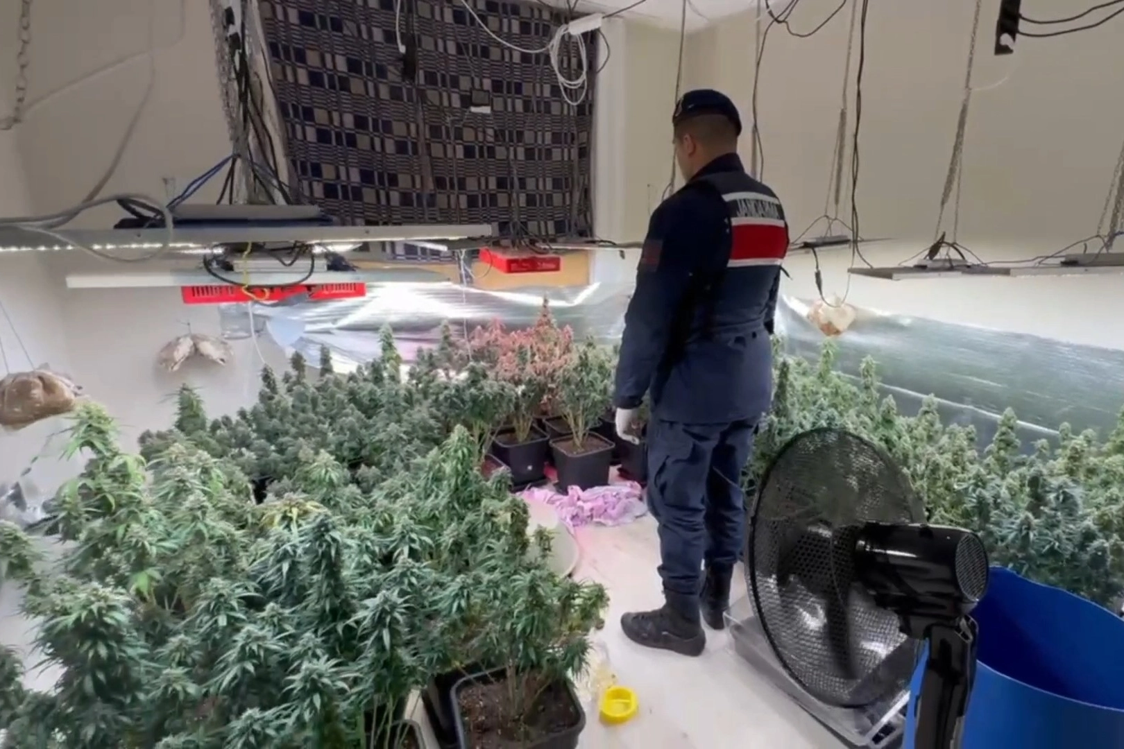 Tekirdağ İl Jandarma Komutanlığı ekipleri, Süleymanpaşa'nın Kumbağ Mahallesi'nde gerçekleştirdikleri titiz operasyon sonucunda, uyuşturucu serası gibi donatılmış bir eve ulaştı. Olayın şüphelisi olduğu iddia edilen B.E.E.'nin ikamet ettiği evin bir odasında; klima, fanlar, özel aydınlatmalar ve gübreleme sistemi ile uyuşturucu yetiştirme ortamı kurulduğu belirlendi. Aramada; 9 kilo 374 gram skunk, 2 gram skunk tohumu, 60 kök skunk bitkisi ve uyuşturucu üretiminde kullanılan onlarca ekipman ele geçirildi. Evin içerisindeki bu düzenek, adeta profesyonel bir serayı andırıyordu. Teknik ekipmanların detaylı incelenmesi sonucu, evde yer alan sistemin düzenli bir hava akışı ve iklimlendirme sağlamak için kurulduğu ve üretimin devam ettirilmesi için her ayrıntının düşünüldüğü tespit edildi. Şüpheli B.E.E., jandarma ekipleri tarafından gözaltına alındı ve hakkında yasal işlemler başlatıldı.