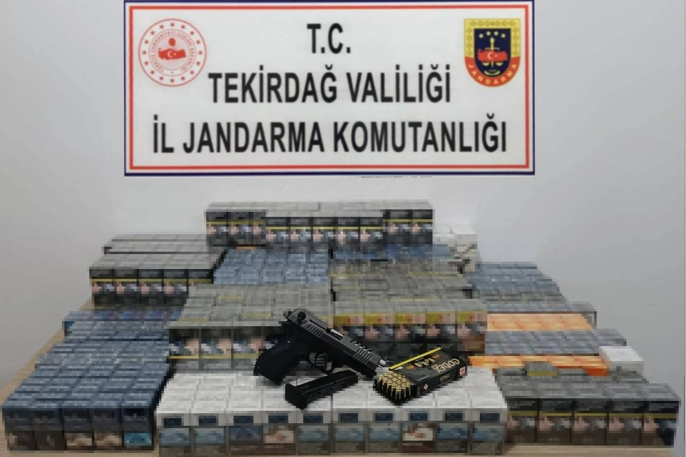 Tekirdağ İl Jandarma Komutanlığı ekiplerince, Süleymanpaşa ilçesinde Ü.E.'ye ait işletmede yapılan aramada 31 bin 240 adet dolu ve boş makaron ile 2 kilogram kıyılmış tütün ele geçirdi. Saray ilçesi Kemalpaşa Mahallesi'nde B.K.'nin evinde gerçekleştirilen aramada da 867 paket kaçak sigara, 1 tabanca, 1 şarjör ve 35 adet fişek bulundu. Olaylarla ilgili şüpheliler hakkında adli işlem başlatıldı.