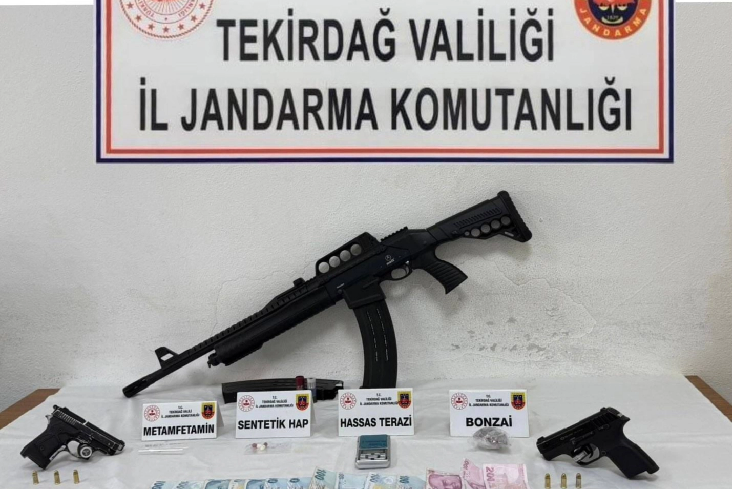 İl genelinde suç ve suçlularla mücadele kapsamında yapılan çalışmalarda Hayrabolu, Süleymanpaşa, Çorlu ve Marmaraereğlisi ilçelerinde farklı tarihlerde operasyonlar düzenlendi. Hayrabolu ilçesi Çerkezmüsellim Mahallesi'nde H.A.'nın ikametinde yapılan aramada 1 adet av tüfeği ile 1 adet kurusıkı tabanca ele geçirildi. Süleymanpaşa ilçesi Aydoğdu Mahallesi'nde M.Ş., V.Ş. ve R.Ç.'nin evinde yapılan aramada ise 15 gram bonzai, 4 gram metamfetamin, 2 adet sentetik hap, 1 adet hassas terazi, 2 adet ruhsatsız tabanca, 6 adet fişek, 1 adet av tüfeği, 3 adet av tüfeği fişeği ve suçtan elde edildiği değerlendirilen bin 705 TL ele geçirildi. Çorlu ilçesi Zafer Mahallesi'nde C.T. isimli şahsın üzerinde yapılan aramada 1 adet tabanca, 1 adet şarjör ve 7 adet fişek bulundu. Marmaraereğlisi ilçesi Yeniçiftlik Mahallesi'nde, E.B.'nin evinde yapılan aramada ise 1 adet tabanca ile 1 adet boş şarjör ele geçirildi. Çorlu ilçesi Şeyhsinan Mahallesi'nde G.Ö.'nün ikametinde ve aracında yapılan aramalarda ise 1 adet kurusıkı tabanca ve şarjör ile birlikte 87 şişe farklı markalarda alkollü içki ele geçirildi. Olaylarla ilgili şüpheliler hakkında adli işlem başlatıldı.