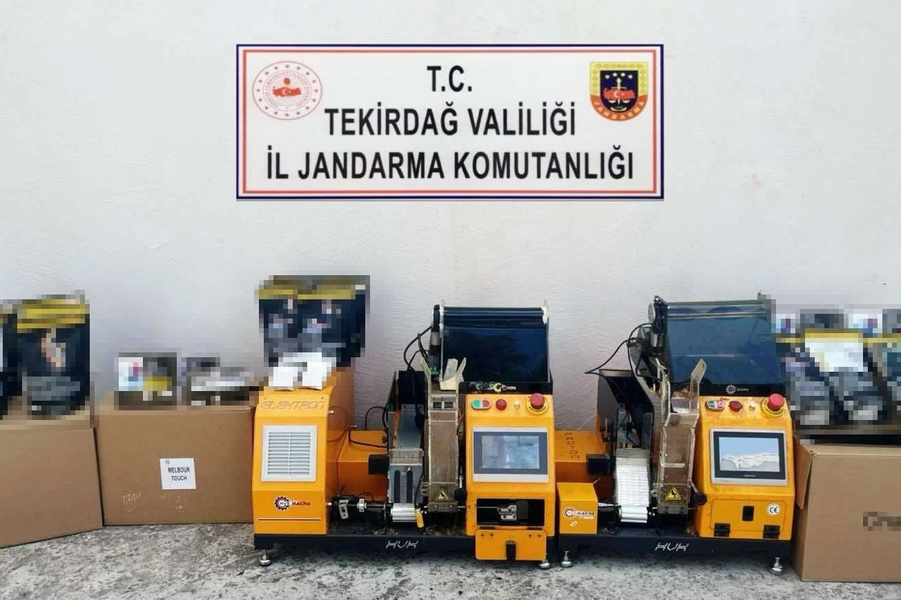 İl Jandarma Komutanlığı ekiplerince Süleymanpaşa ilçesi Kumbağ Mahallesi'nde A.K.'ye ait işletmede yapılan aramada, 33 kilogram nargile tütünü bulundu. Çerkezköy ilçesi Yıldırım Beyazıt Mahallesi'nde E.Ş.'nin ikameti ve iş yerinde yapılan aramada ise 10 kilogram kıyılmış tütün, 25 bin dolu makaron, 427 adet gümrük kaçağı sigara, 30 kilogram nargile tütünü, 20 bin adet boş karton kutu ve 9 bin 650 adet şeffaf poşet ele geçirildi. Ergene ilçesi Sağlık Mahallesi'nde S.D.'nin ikametinde gerçekleştirilen operasyonda da 10 bin 200 adet dolu makaron, 10 bin adet boş makaron, 2 adet tam otomatik sigara sarma makinesi ve 56 adet (100 gramlık) bandrollü tütün bulundu. Öte yandan Şarköy ilçesi Hoşköy Mahallesi'nde E.T.'ye ait adreste 1 adet ruhsatsız av tüfeği ele geçirildi. Kaçakçılıkla Mücadele Kanunu kapsamında şüpheliler hakkında yasal işlem başlatıldığı bildirildi.