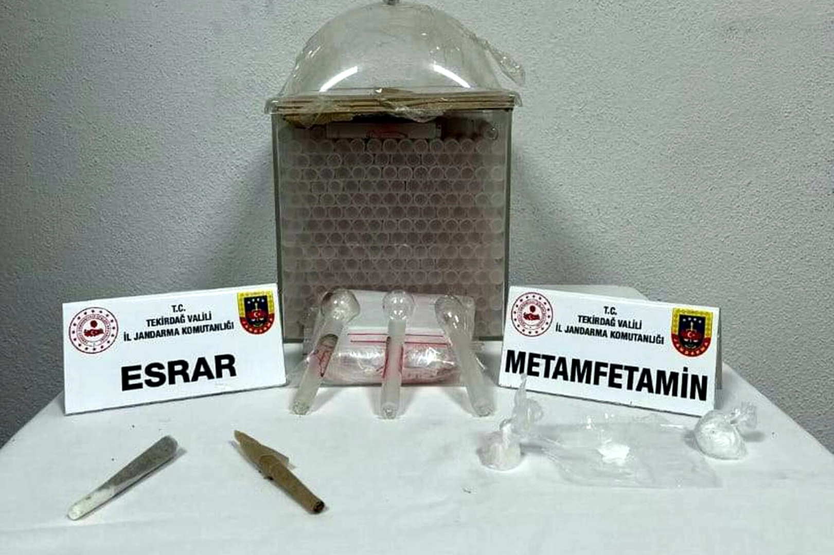 İl Jandarma Komutanlığı ekipleri, Süleymanpaşa, Marmaraereğlisi ve Şarköy ilçelerinde uyuşturucu operasyonları düzenledi. Belirlenen adresler ve araçlarda yapılan aramalarda, metamfetamin, esrar, bonzai, sentetik hap, amfetamin, uyuşturucu kullanma aparatları, ruhsatsız av tüfeği ve samuray tabir edilen kılıç ele geçirildi. Gözaltına alınan 8 şüpheliyle ilgili soruşturma sürüyor.