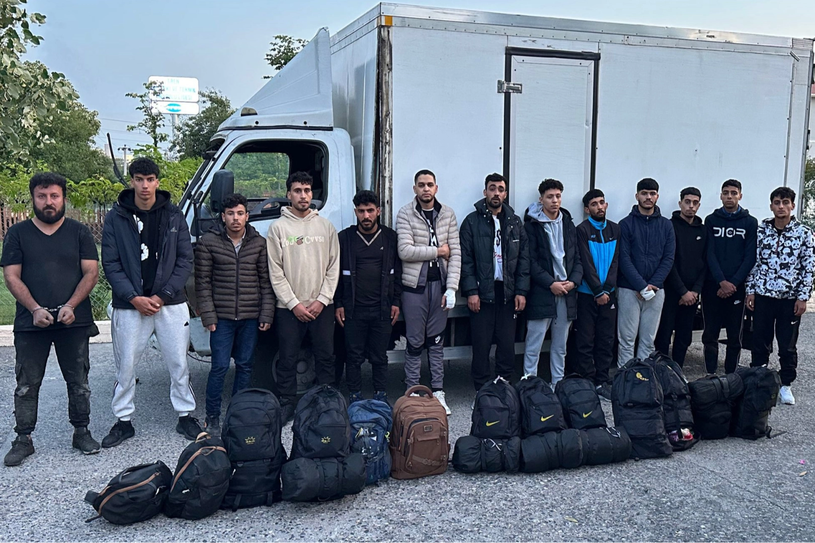 Kapalı kasa kamyondaki incelemede 13 düzensiz göçmen yakalandı.