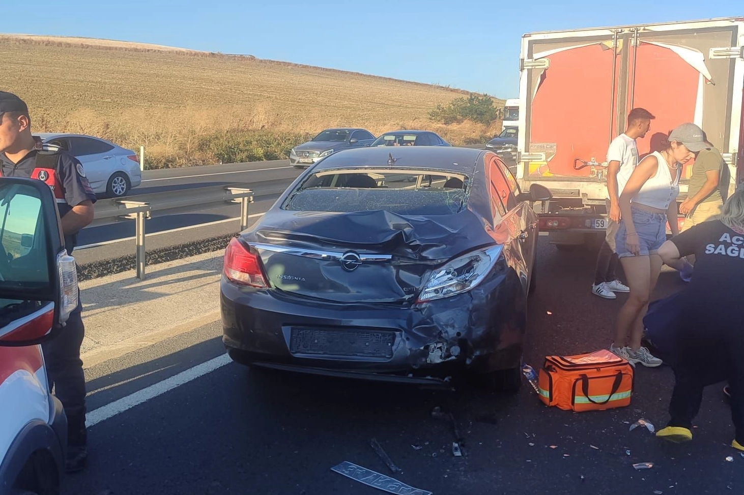 Tekirdağ'dan İstanbul yönüne seyir halinde olan M.G. (23) yönetimindeki 59 A** 137 plakalı motosikletin, önündeki trafiğin yavaşlaması sonucu, Y.A. (34) yönetimindeki 34 *R 9417 plakalı otomobile çarpmasıyla gerçekleşti. Çarpmanın etkisiyle motosiklet sürücüsü M.G. ve yolcu A.E. (23) hafif yaralandı. Yaralılar, olay yerine gelen sağlık ekipleri tarafından Namık Kemal Üniversitesi Hastanesine kaldırılarak tedavi altına alındı. Kazada her iki araçta da maddi hasar meydana geldi.