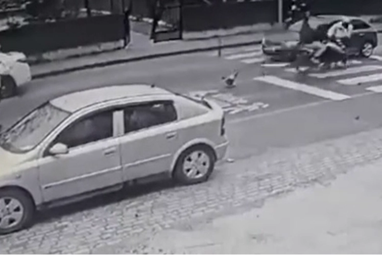 Öte yandan olay anı, çevredeki bir iş yerinin güvenlik kamerasınca kaydedildi.