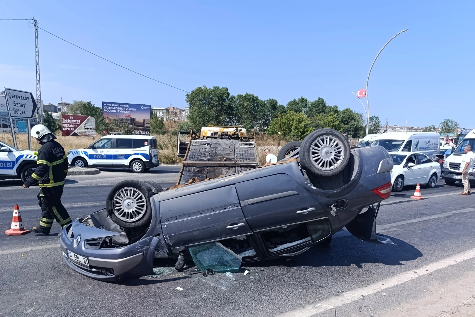 Çarpışmanın etkisiyle devrilen otomobilin sürücüsü M.E.B. ağır yaralandı.