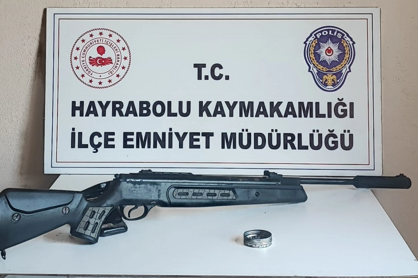 Zanlının evinde bir havalı tüfek ile 67 saçma ele geçirildi.