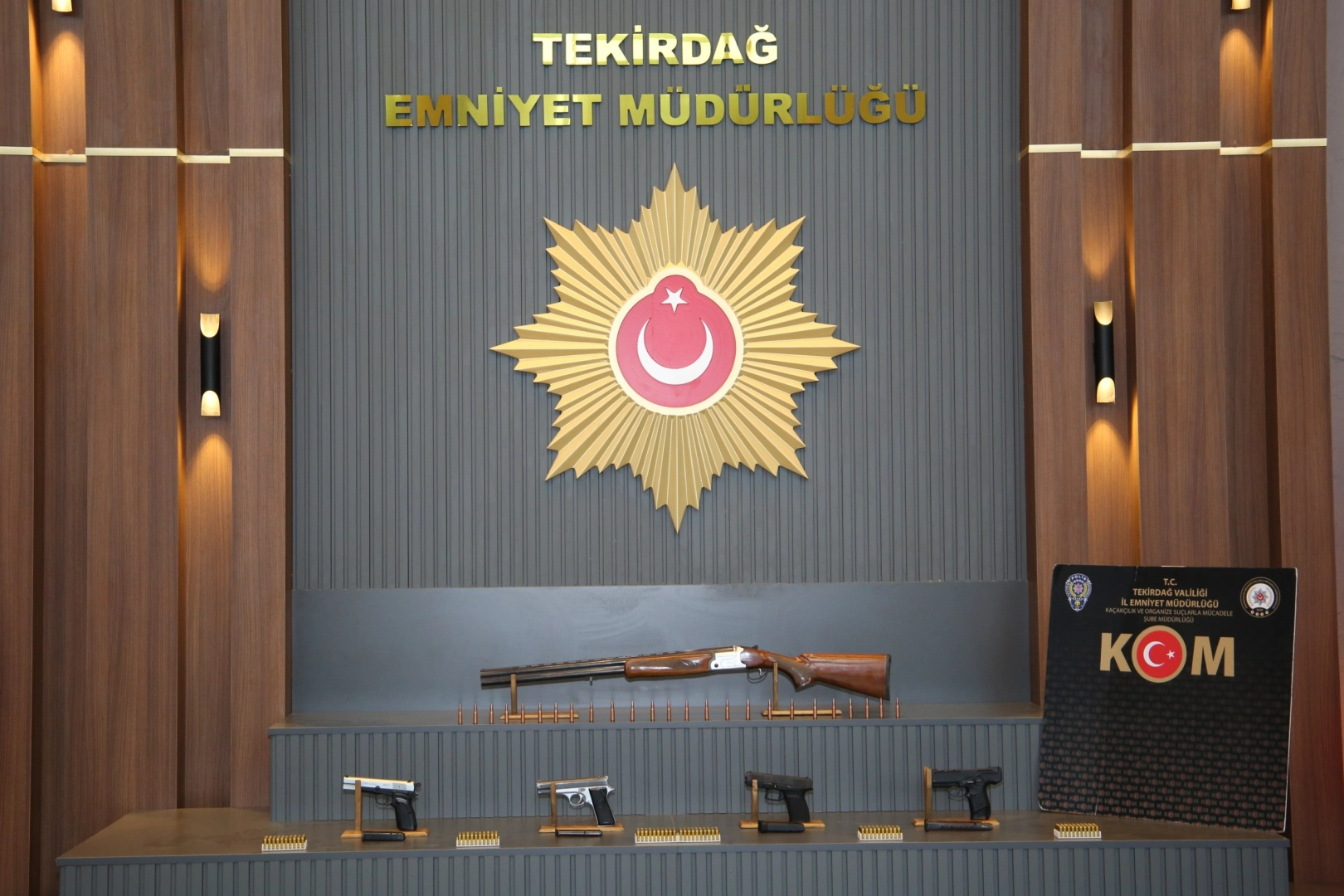 Tekirdağ İl Emniyet Müdürlüğü Kaçakçılık ve Organize Suçlarla Mücadele Şube Müdürlüğü görevlilerince silah ticareti suçu çerçevesinde operasyon düzenlendi. 10 şahsa yönelik olarak yapılan çalışmalar neticesinde, 4 adet ruhsatsız tabanca, 1 adet av tüfeği, 25 AK-47 Mermisi, 270 adet tabanca mermisi ele geçirildi. Şüpheli şahıslar hakkında silah ticareti suçundan yasal işlemlere başlandı.