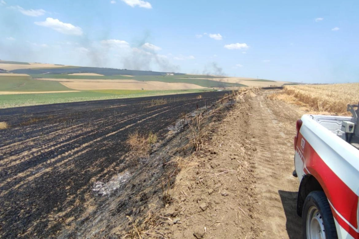 Yangında 70 dönüm buğday ekili alan zarar gördü.