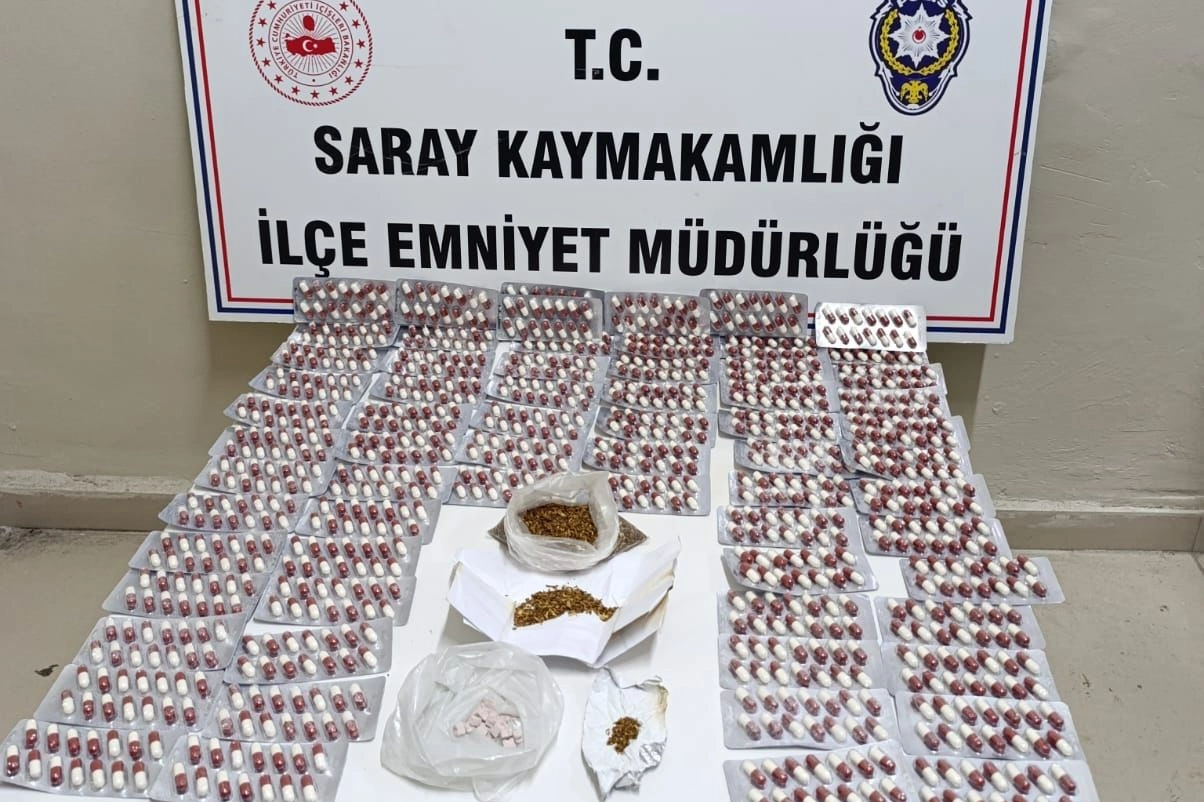 İl Emniyet Müdürlüğü ekipleri, uyuşturucu ile mücadele kapsamında Saray ilçesindeki iki adrese eş zamanlı operasyon düzenledi. Adreslerde yapılan aramalarda; 938 adet sentetik ecza hapı, 38.1 gram bonzai ve 13 adet ecstasy ele geçirildi. Operasyonda B.Y. hakkında uyuşturucu madde kullanmak suçundan işlem yapılırken, S.Ş. isimli şüpheli uyuşturucu ticareti suçundan gözaltına alındı. Adliyeye sevk edilen S.Ş., çıkarıldığı mahkemece tutuklanarak cezaevine gönderildi. Yetkililer, uyuşturucu ile mücadelede kararlılıkla çalışmaların sürdürüldüğünü belirtti.