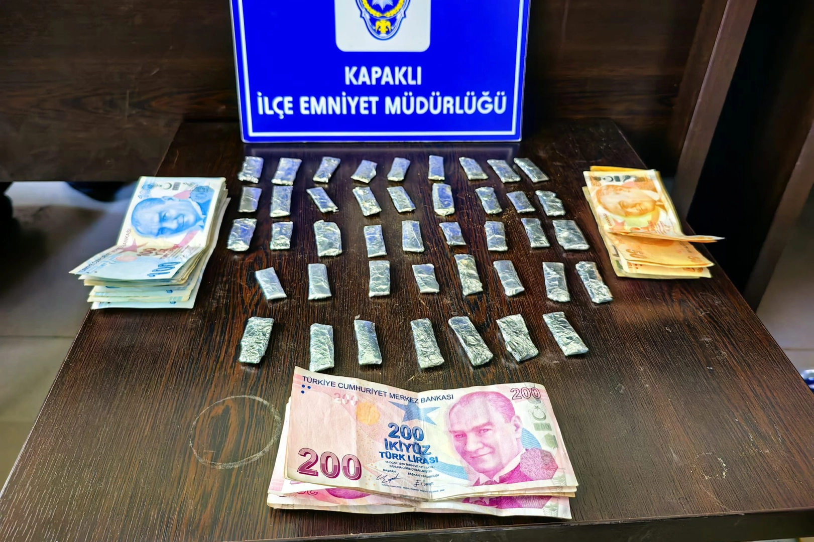 Aramalarda uyuşturucu ticaretinden elde edildiği düşünülen 4 bin 610 lira ile ormanlık alan içerisinde kavanoza saklanmış satışa hazır 38 adet folyoya sarılmış uyuşturucu madde ele geçirildi.