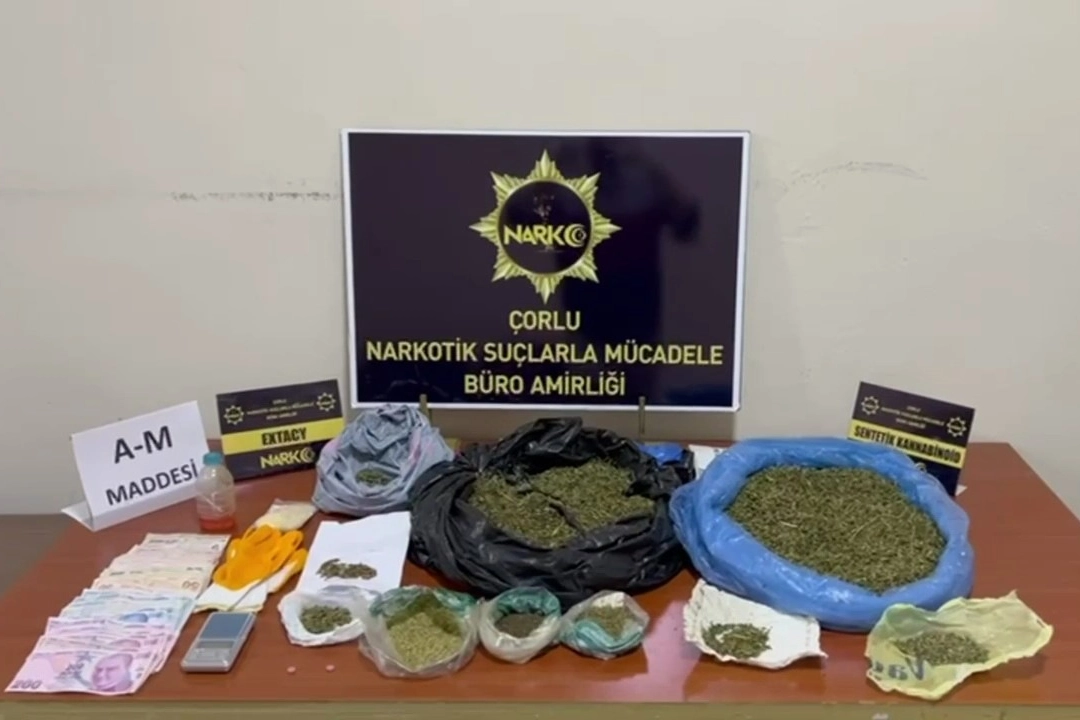 Tekirdağ İl Emniyet Müdürlüğünce Çorlu ve Çerkezköy ilçelerinde uyuşturucu ve uyarıcı madde ticareti yapan şahıslara yönelik çalışmalar sürüyor. Ekiplerce yapılan saha çalışmalarında 4 şahıs üzerinde ve 3 ikamette arama yapıldı. Yapılan aramalarda, 930 gram sentetik kannobinoid maddesi, 2 adet extacy hap, 1 adet hassas terazi ele geçirildi. Konu ile ilgili olarak yakalanan Z.K ve Ö.B isimli şahıslara uyuşturucu ve uyarıcı madde kullanmak suçundan işlem yapılırken, yakalanan M.E ve M.Ç isimli şahıslar uyuşturucu ve uyarıcı madde ticareti yapmak suçundan gözaltına alındı. Zanlılar, çıkarıldıkları mahkemece tutuklandı. Ayrıca ülkeye kaçak yollarla giren Afgan uyruklu C.Z isimli şahıs yakalanarak gerekli işlemler için ilgili birime teslim edildi.