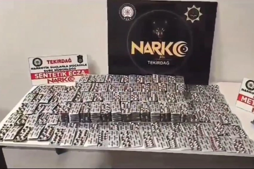 Tekirdağ İl Emniyet Müdürlüğü Narkotik Suçlarla Mücadele Şube Müdürlüğü ekiplerince, Tekirdağ’da uyuşturucu madde ticareti yapan şahısları deşifre etmeye yönelik yapılan çalışmalarda Süleymanpaşa ilçesinde 1 iş yeri ve 4 adrese yönelik operasyon düzenlendi. Operasyonda yapılan aramada; 531 plaster halinde toplam 7 bin 431 adet sentetik ecza hap, 4,3 gram metamfetamin ele geçirildi. Operasyonda 7 şüpheli gözaltına alındı. Yakalanan 7 şahıstan Ş.Ö., U.M. ve B.A. isimli şahıslar uyuşturucu ve uyarıcı madde ticareti yapmak suçundan adli makamlarca tutuklanarak cezaevine teslim edildi.