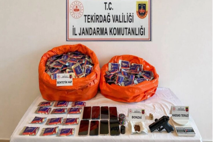Adreslerde yapılan aramalarda, 36 bin 500 uyuşturucu hap, 10 gram sentetik uyuşturucu, hassas terazi, 2 öğütme aparatı ve kurusıkı tabanca ele geçirildi.