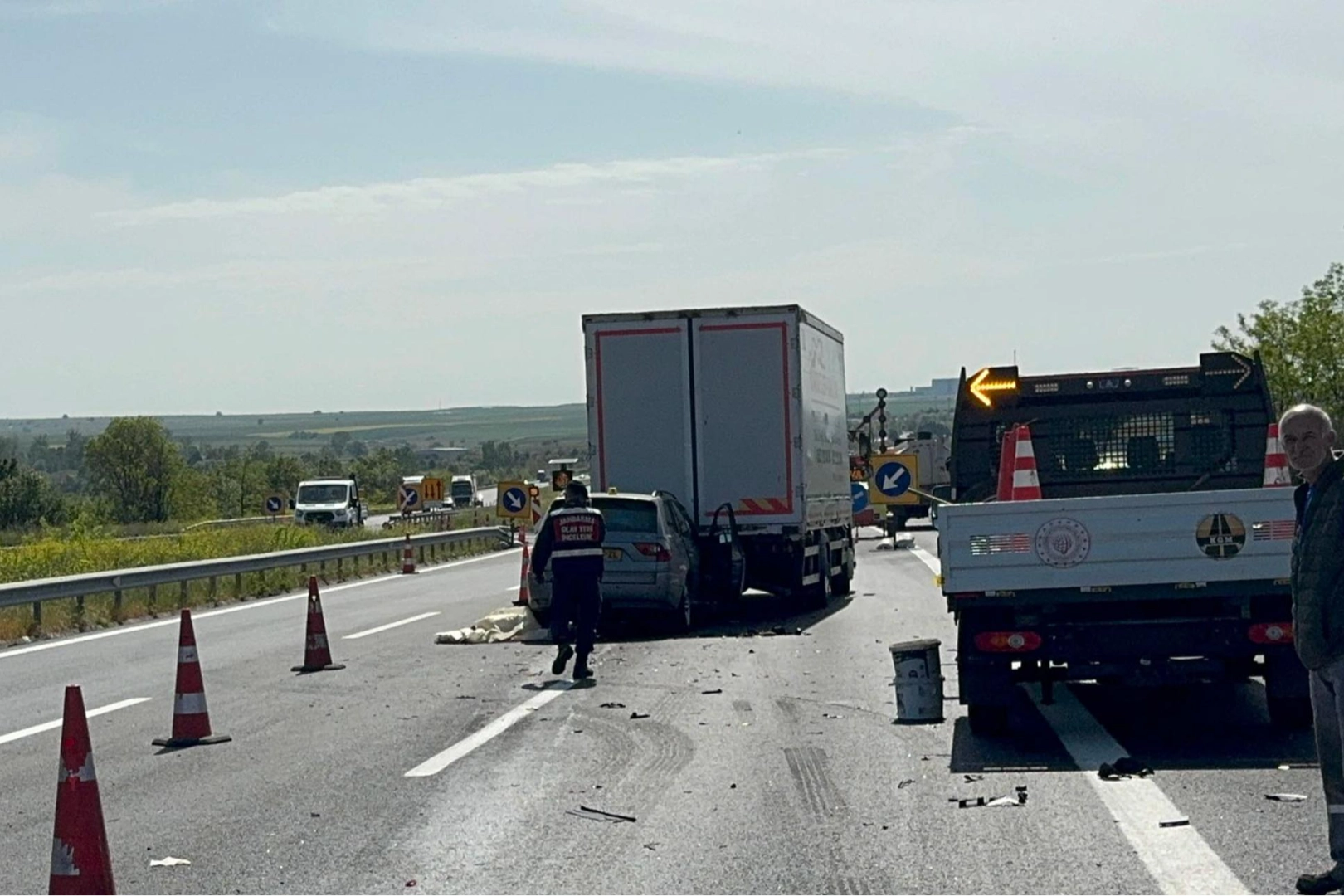 Kaza, TEM Otoyolu'nun Ergene ilçesi gişeler mevkisinde meydana geldi. İstanbul istikametine giden N.D., yönetimindeki 47 ** ZL Hollanda plakalı cip, önünde ilerleyen C.S.'nin kullandığı 59 ** 504 plakalı kamyona çarptı. Kamyonun altına giren cipte sürücü N.D, yanında bulunan eşi E.D. ve kamyon sürücüsü C.S., yaralandı. İhbarla bölgeye jandarma ve sağlık ekipleri sevk edildi. Yaralılar, ilk müdahalelerinin ardından Çorlu Devlet Hastanesi'ne kaldırıldı. Kazayla ilgili soruşturma başlatıldı.