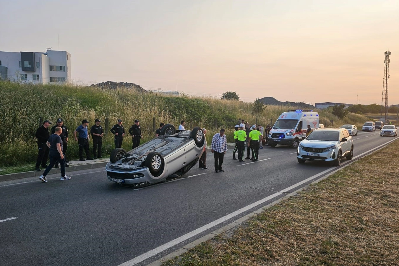 Kaza, Çerkezköy Organize Sanayi Bölgesi (ÇOSB) Sanayi Bulvarı üzerinde meydana geldi. İddiaya göre, D.Y. idaresindeki 59 *** 562 plakalı otomobil, kavşakta başka bir araca çarpmamak için ani manevra yaptı. Bu sırada sürücüsünün direksiyon hâkimiyetini kaybettiği araç, refüje çarparak ters dönüp metrelerce sürüklendi. Kazayı gören vatandaşlar durumu hemen 112 Acil Çağrı Merkezi'ne bildirdi. İhbar üzerine olay yerine polis ve sağlık ekipleri sevk edildi. Kazayı hafif sıyrıklarla atlatan sürücü, ters dönen araçtan kendi imkanlarıyla çıkmayı başardı. Olayın ardından çevredeki vatandaşlar sürücüye yardım ederken, sağlık ekipleri ilk müdahaleyi kaza yerinde yaptı. D.Y., hastaneye gitmek istemediğini belirtti. Kaza nedeniyle yolun bir bölümü trafiğe kapanırken, ters dönen otomobil çekici yardımıyla kaldırıldı. Yolun yeniden ulaşıma açılmasıyla trafik normale döndü. Polis kazayla ilgili inceleme başlattı.