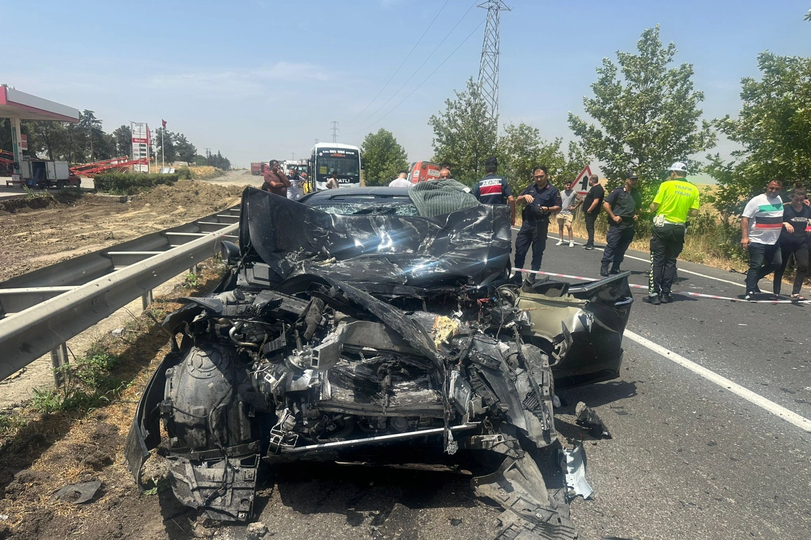 Kaza anı çevredeki bir akaryakıt istasyonunun güvenlik kamerasına da yansıdı.