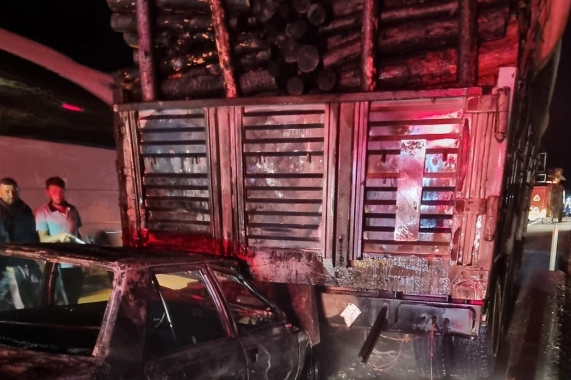 Bayram T. (38) idaresindeki 44 ND *** plakalı otomobil, Denizli-Antalya kara yolu Bölmepınar köyü mevkisinde aynı istikamette ilerleyen Şeref Ş. (66) yönetimindeki 16 US *** plakalı tomruk yüklü tıra çarptı.