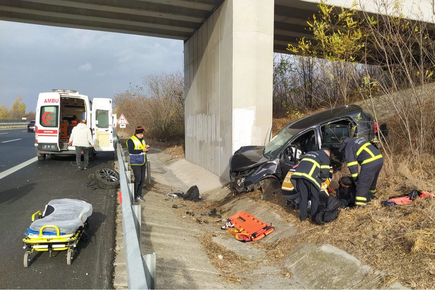 Nesine 2. Lig ekiplerinden Kırklarelispor oyuncusu Cenk Doğan idaresindeki 34 ** 2373 plakalı otomobil, Ahmetbey beldesi yakınlarında üst geçidin ayağına çarptı.