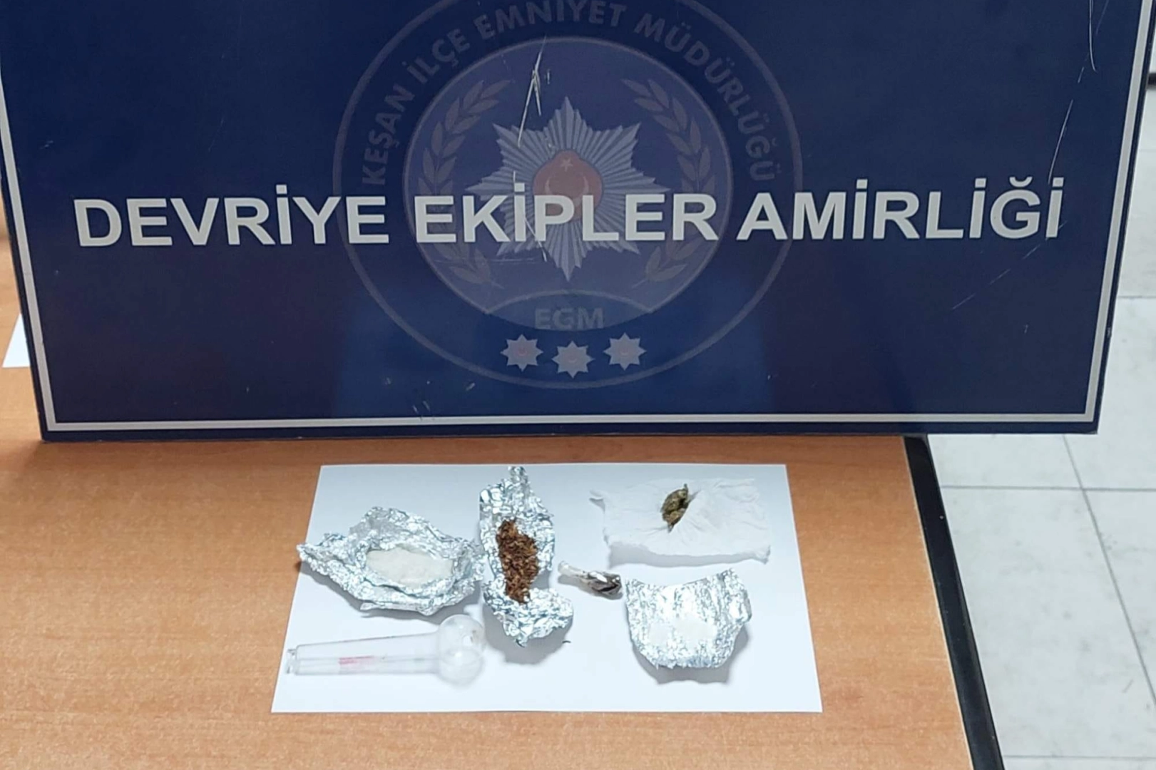 Polis ekipleri, Kemal Paşa Mahallesi Badem Sokak'ta B. K. ve T.O'nun üzerini aradı. Aramada uyuşturucu kullanma aparatı, üç alüminyum folyoya sarılı metamfetamin ve bir miktar esrar ele geçirildi.