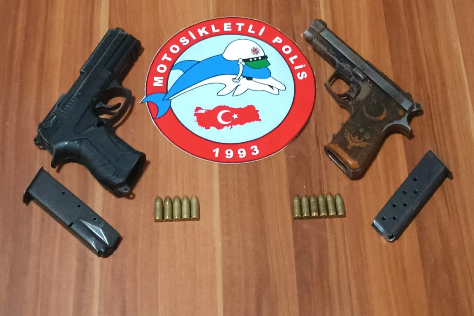 Şüpheli D.B. üst aramasında 2 silah ile silahlara ait 11 mermi ele geçirildi.