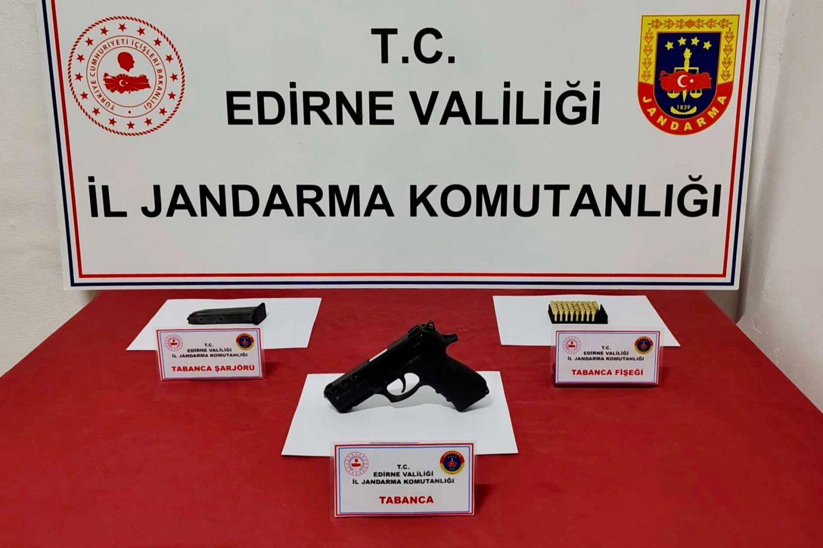 Merkez İlçe Jandarma Komutanlığı ekipleri tarafından düzenlenen bir uygulama sırasında şüpheli bir şahsın aracında ve üzerinde arama yapıldı. Arama sonucunda, 1 adet tabanca, 1 adet tabanca şarjörü ve 43 adet tabanca fişeği ele geçirildi.
