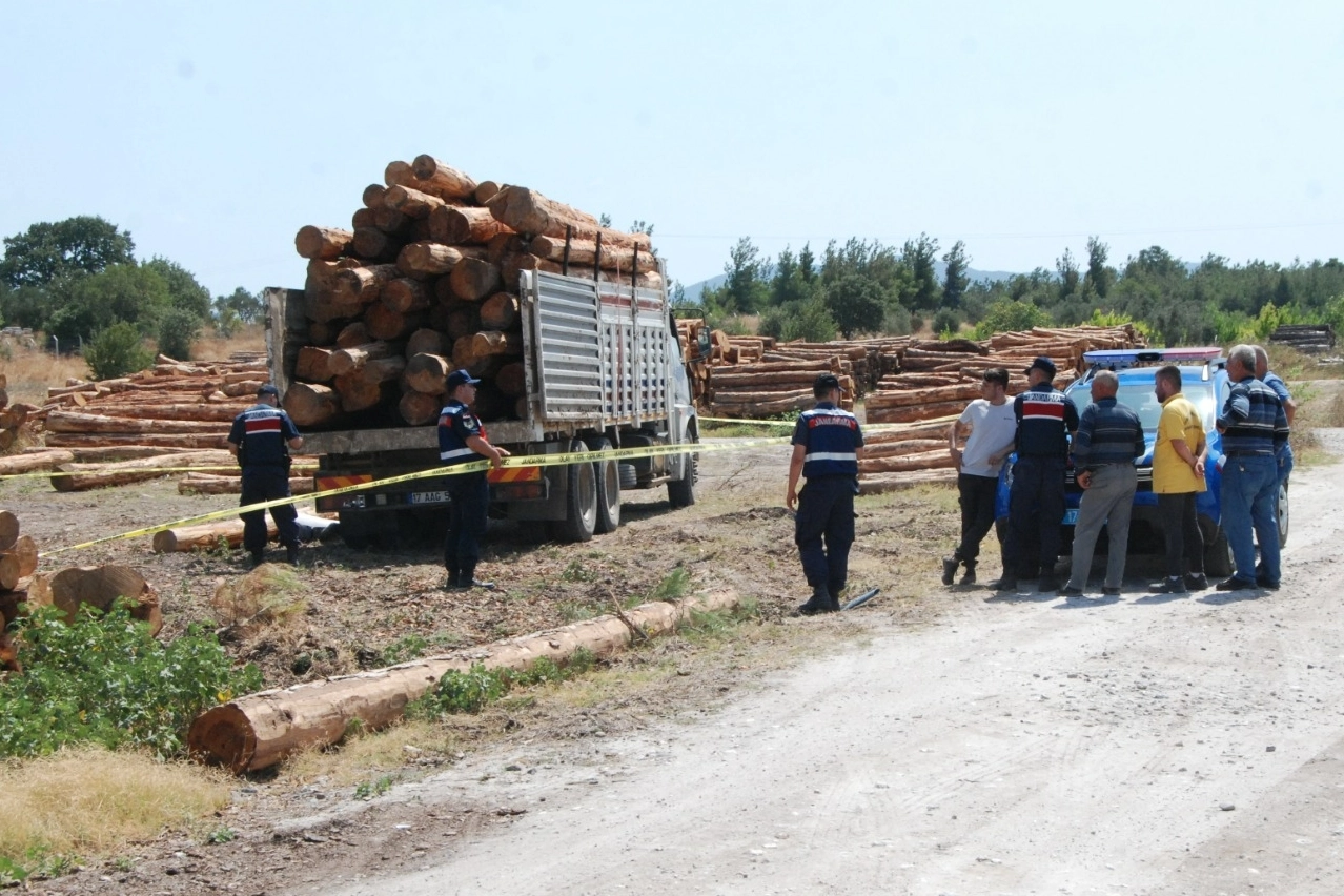 Sürücü Hasan Evci (60), Bayramiç'in Korucak köyündeki ormanlık alanda yapılan ağaç kesiminden elde edilen tomrukları, 17 *** 571 plakalı kamyonla Yağcılar odun deposuna götürdü.