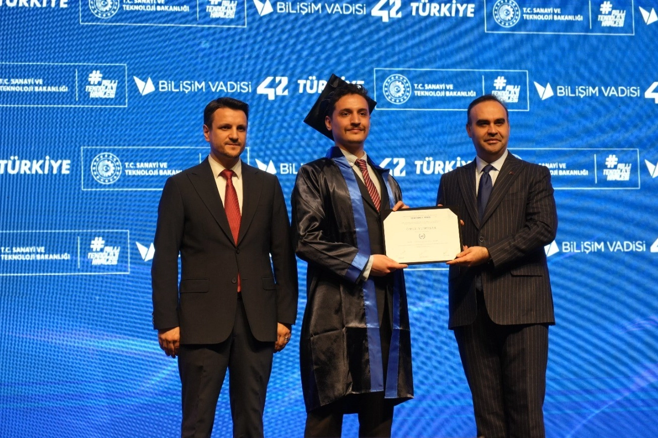 Türkiye'de yeni yazılımcıların yetiştirilmesi için Bilişim Vadisi bünyesinde, Sanayi ve Teknoloji Bakanlığı öncülüğünde kurulan 42 Türkiye'nin ilk mezuniyet töreni, Sanayi ve Teknoloji Bakanı Mehmet Fatih Kacır'ın katılımıyla gerçekleştirildi. Törende konuşan Bakan Mehmet Fatih Kacır, yazılımın küresel güç dengelerinde belirleyici bir rol oynadığına dikkati çekti. Dünyanın en değerli 10 şirketinden 9'unun teknoloji ve yazılım odaklı olduğunu vurgulayan Bakan Kacır, akıllı sistemlerden otonom araçlara, siber güvenlikten üretim hatları ve sağlık teknolojilerine kadar birçok alanda katma değer sağlayan asli unsurun yazılım olduğunu ifade etti. Meseleye sadece ekonomik bir yarış olarak bakılmaması gerektiğinin altını çizen Kacır, "Kriz anlarında, kaynak koduna erişemediğiniz, nasıl çalıştığını bütünüyle denetleyemediğiniz bir sistem öncelikle onu yazanın tercih ve önceliklerine hizmet eder. İşte bu yüzden yazılımda tam bağımsızlık ilkesi, Türkiye'nin istikbali ve bekasıyla doğrudan ilişkilidir" dedi. Kacır, temel müfredatı tamamlayan öğrencilerin yapay zeka, siber güvenlik, oyun geliştirme ve web teknolojileri gibi alanlarda uzmanlaştığını belirterek, "Eğitim süreci boyunca teorik birikimlerini gerçek dünya deneyimiyle taçlandıran gençlerimiz, zorunlu staj programları sayesinde henüz mezun olmadan sektörün mutfağına girme imkanı elde ediyor" diye konuştu. "Bugüne kadar 98 bin 575 başvuru aldık" Yeni nesil yazılım okullarına gösterilen yoğun ilgiye de değinen Bakan Kacır, sözlerini şöyle tamamladı: "Kuruluşundan bu yana yoğun ilgi gören okullarımıza bugüne kadar 98 bin 575 arkadaşımız başvurdu. Çevrimiçi testi geçen ardından da 4 haftalık yoğun havuz eğitiminde başarı elde eden 2 bin 124 aday okullarımıza kayıt yaptırdı. Bugün de temel müfredat eğitimini tamamlayan 407 öğrencimizin başarısını kutlamak üzere bir aradayız. Ortaya çıkan tablo bize şunu açıkça gösteriyor; burada gençlerimize gerçek fırsatlar sunan güçlü bir model var. Burada iş dünyasıyla buluşmaya hazır, analitik düşünebilen, problem çözebilen, üretim kültürünü içselleştirmiş nitelikli bir yetenek havuzu var. Burada ülkemizin yazılımcı ve teknoloji yeteneği ihtiyacına doğrudan cevap verebilecek stratejik bir yapı var. Bugün mezuniyet heyecanı yaşayan her bir gencimizin; yarının teknolojilerini inşa eden, geliştirdiği yazılımlarla hayatın farklı alanlarına dokunan, kurduğu girişimlerle ekonomik değer üreten ve ortaya koyduğu yenilikçi çözümlerle ülkemizin küresel rekabet gücünü daha da ileriye taşıyan bireyler olarak Türkiye'nin geleceğinde önemli roller üstleneceğine yürekten inanıyorum."