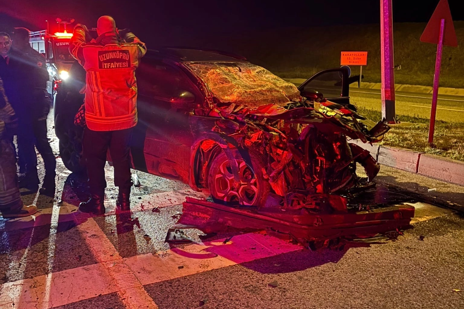 Kaza, 31 Ocak 2026 günü saat 04.50 sıralarında Uzunköprü ilçesi Çöpköy yol kavşağında meydana geldi. Edinilen bilgiye göre, Keşan istikametinden Edirne yönüne seyir halinde olan ve sürücüsünün kimliğinin ilk etapta A.G. olduğu değerlendirilen otomobil, O.U. (32) idaresindeki tıra sol arka kısmından çarptı. Kazada ağır yaralanan otomobil sürücüsü, olay yerine sevk edilen 112 Acil Sağlık ekiplerince Uzunköprü Devlet Hastanesine kaldırıldı. Yaralı sürücü, burada yapılan tüm müdahalelere rağmen kurtarılamayarak hayatını kaybetti. Yapılan çalışmalar sırasında ölen şahsın üzerinde bulunan kimlik bilgileriyle ilgili şüphe oluştu. Kimlikte adı geçen kişinin hayatta olduğunu beyan etmesi üzerine, polis ekipleri kimlik tespitine yönelik detaylı inceleme başlattı. Olay yerinden muhafaza altına alınan cep telefonuna gelen aramalar ve yapılan parmak izi incelemesi sonucunda, hayatını kaybeden kişinin E.Ş.I. olduğu tespit edildi. UYAP üzerinden yapılan sorgulamada E.Ş.I.’nın; bilişim yoluyla dolandırıcılık, sahte banka ve kredi kartı kullanımı, suç işlemek amacıyla örgüt kurma ve resmî belgede sahtecilik suçları başta olmak üzere çok sayıda kaydının bulunduğu, toplamda 10 yıl 8 ay kesinleşmiş hapis cezası olduğu belirlendi. Kazaya karışan tır sürücüsü O.U., alınan talimatlar doğrultusunda gözaltına alınarak adli makamlara sevk edildi. Ayrıca araç içerisinde ele geçirilen sahte kimlik ve belgelerle ilgili olarak "Resmî Belgede Sahtecilik" suçundan ayrı bir soruşturma başlatıldı. Kazayla ilgili inceleme sürüyor.
