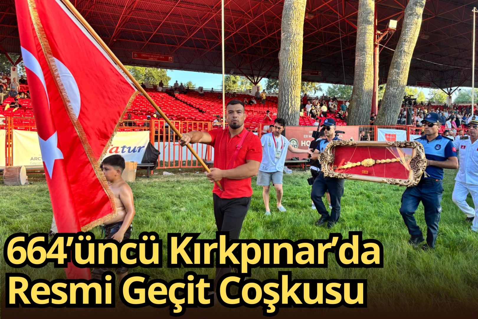 663’üncü Kırkpınar Yağlı Güreşleri başpehlivanı Yusuf Can Zeybek’in Türk bayrağını taşıdığı törende, pehlivanlar, cazgırlar ve hakemler ile Kırkpınar davul zurna ekibi, Er Meydanı’nda yürüdü. Edirne Belediye Bandosu’nun marşlarla eşlik ettiği yürüyüşte Kırkpınar’ın altın kemeri de taşındı.