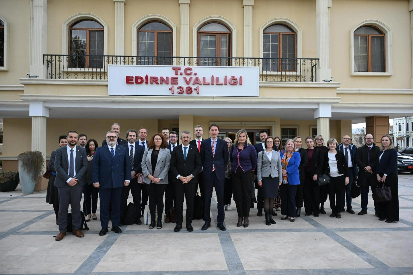 Avrupa Birliği (AB) Türkiye Delegasyonu Başkan Yardımcısı Jurgis Vilcinskas ve AB üyesi ülkelerin Türkiye’deki büyükelçilik misyon şefi yardımcılarından oluşan heyet, Edirne Valisi Yunus Sezer’i makamında ziyaret etti.