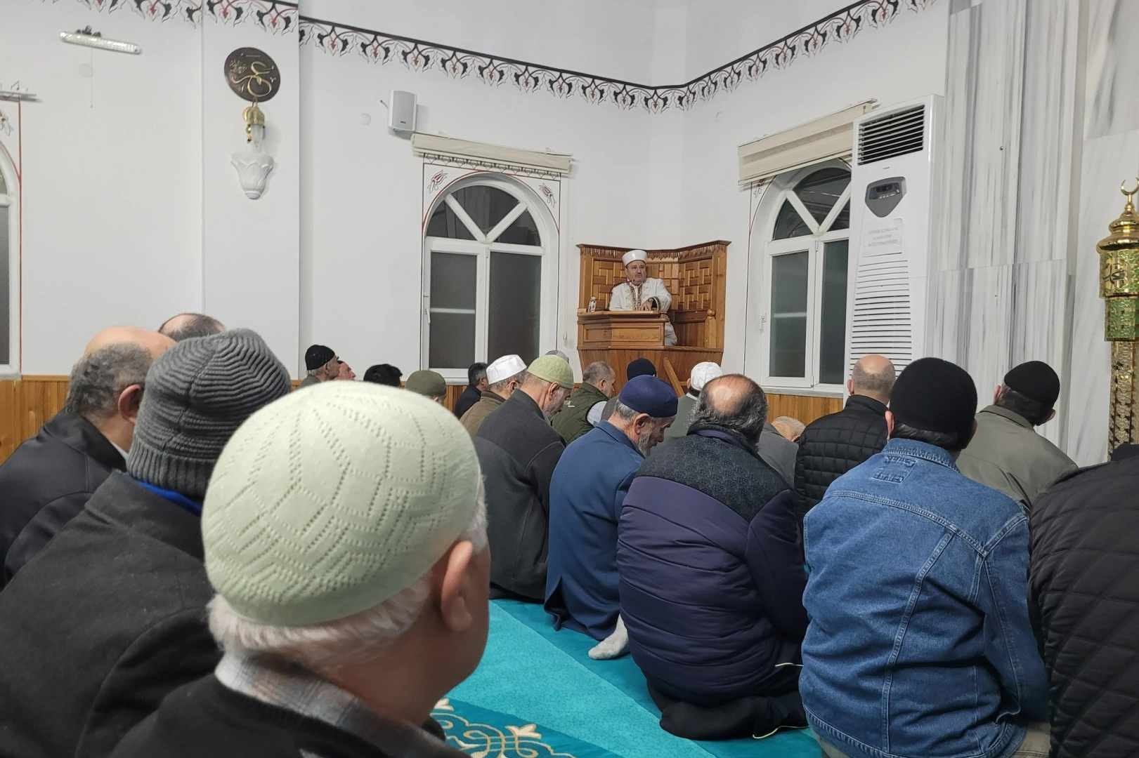 Vaazın ardından teravih namazını kıldıran Müftü Aksu, namaz sonrası cami cemaatiyle sohbet ederek Ramazan ayının manevi atmosferini paylaştı.