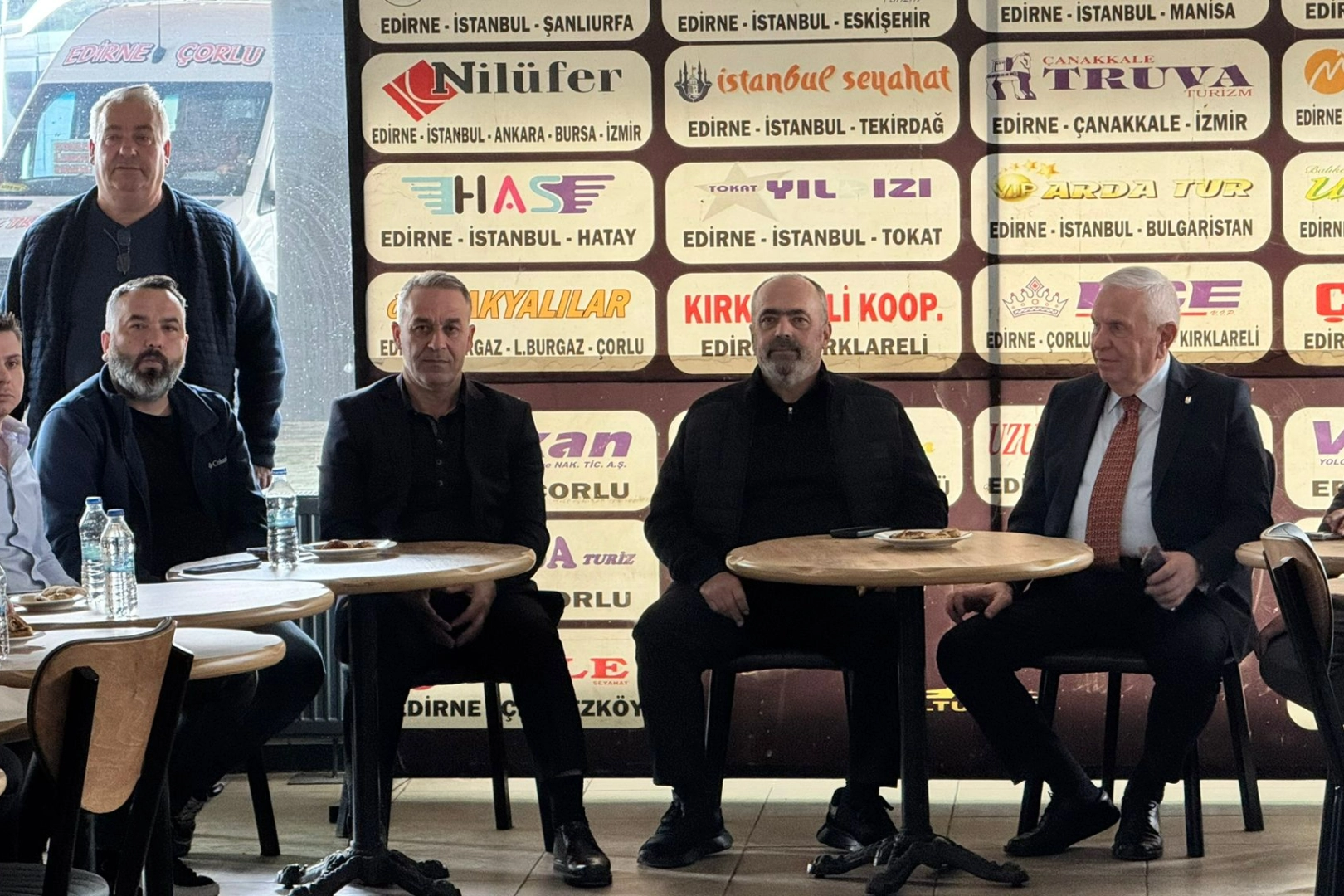 Edirne Otogarı işletmecisi Mustafa Altunhan’ın ev sahipliğinde düzenlenen basın açıklamasına Edirne Ticaret ve Sanayi Odası (ETSO) Başkanı Sezai Irmak, Edirne Şoförler ve Otomobilciler Odası Başkanı Aytaç Dilci ve Türkiye’nin dört bir yanından gelen 50’ye yakın ulaşım sektörü temsilcisi katıldı.