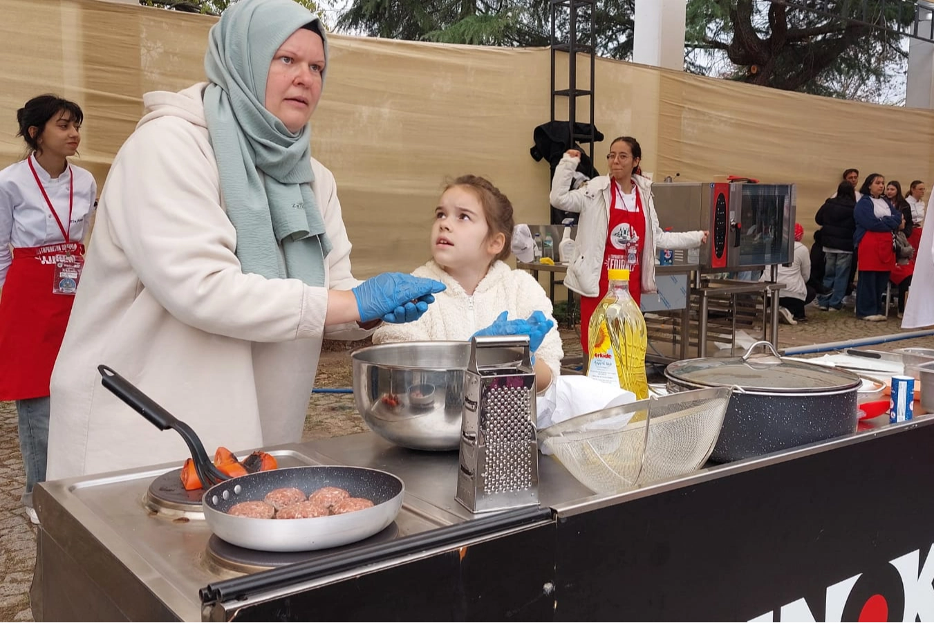 Edirne’de bu yıl ilk defa Karaağaç’taki tarihi tren garı bahçesinde düzenlenen Topraktan Sofraya Edirne Gastronomi Festivali’nin 3’üncü gününde, Anne ve Çocuk Edirne Köftesi etkinliği düzenlendi.