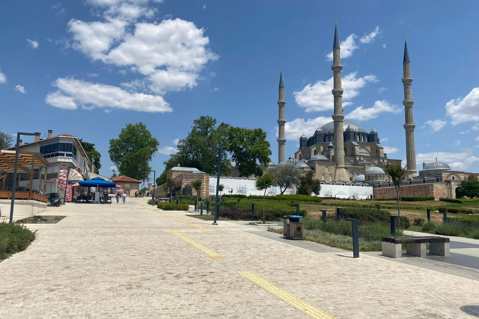 Edirne’de yaz aylarının etkisini iyice hissettirmesiyle birlikte kentteki tarihi ve turistik alanlar da sessizliğe büründü. Özellikle yerli ve yabancı turistlerin uğrak noktası olan Selimiye Camii Meydanı, sıcak hava nedeniyle boş kaldı.