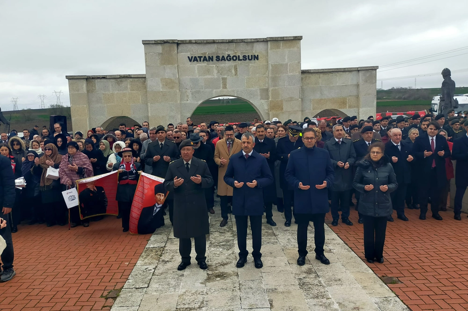 Edirne Valisi Yunus Sezer'in, Edirne Garnizon Komutanı Tuğgeneral Yüksel Kolcu'nun, Edirne Belediye Başkan Yardımcısı Cenk Ergüden ve Şehit Aileleri Yardımlaşma ve Dayanışma Derneği Başkanı Leyla Vardar'ın anıta çelenk sunmasıyla başlayan tören, saygı duruşunda bulunulması ve İstiklal Marşı'nın okunması ile devam etti. Törende 54. Mekanize Piyade Tugay Komutanlığı tören mangası tarafından saygı atışı yapıldı.