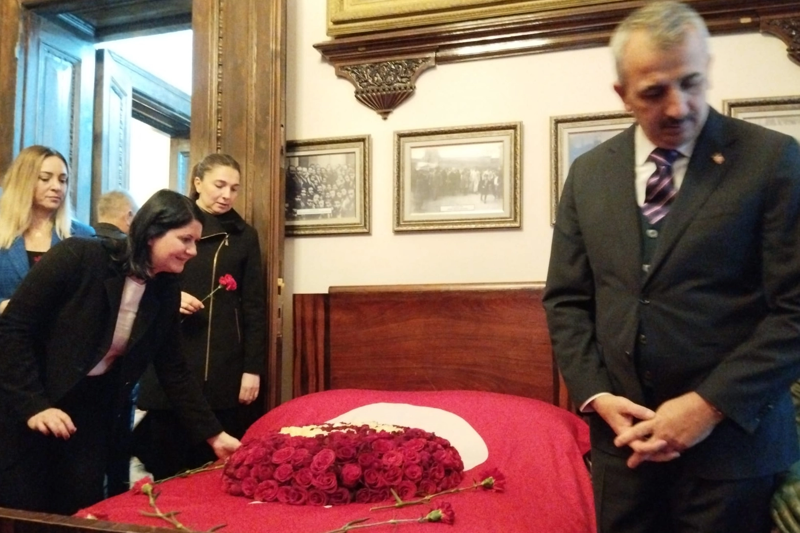 Edirne “Ata”sının kente geliş yıldönümünü kutluyor. Atatürk’ün Edirne’ye gelişinin 94’üncü yıl dönümü kutlamaları kapsamında gerçekleştirilen çelenk bırakma töreninin ardından Edirne Valisi Yunus Sezer, Edirne Belediye Başkanı Av. Filiz Gencan Akın ve beraberlerinde ki heyet, Edirne Belediye Başkanlığı Binası’nda bulunan Atatürk’ün Edirne ziyareti sırasında kaldığı Atatürk’ün Odası’nı ziyaret etti. Minik öğrencilerden oluşan bir grup ile karşılama yapılırken, Atatürk’ün yatağına karanfil bırakıldı.
