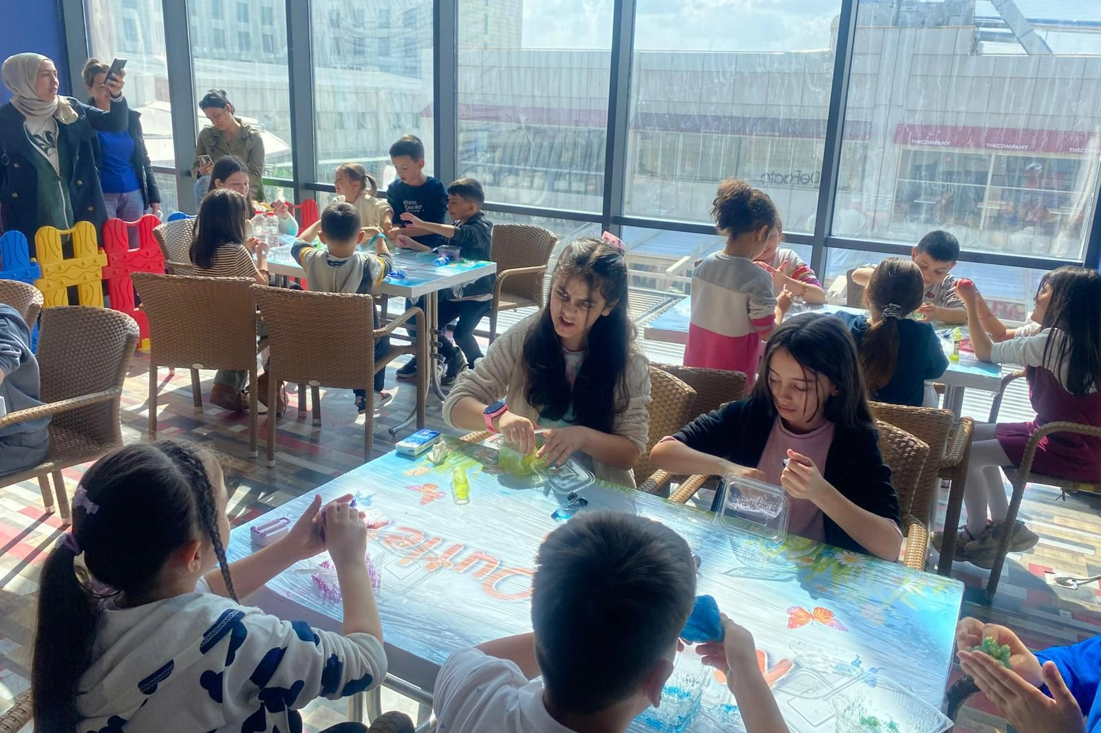 AVM içerisinde kurulan etkinlik alanında bir araya gelen çocuklar, görevlilerin yönlendirmesiyle kendi slime oyun hamurlarını yapma fırsatı buldu. Renkli malzemelerle hazırlanan slimelar, çocukların hem el becerilerini geliştirmesine hem de keyifli vakit geçirmesine olanak sağladı.