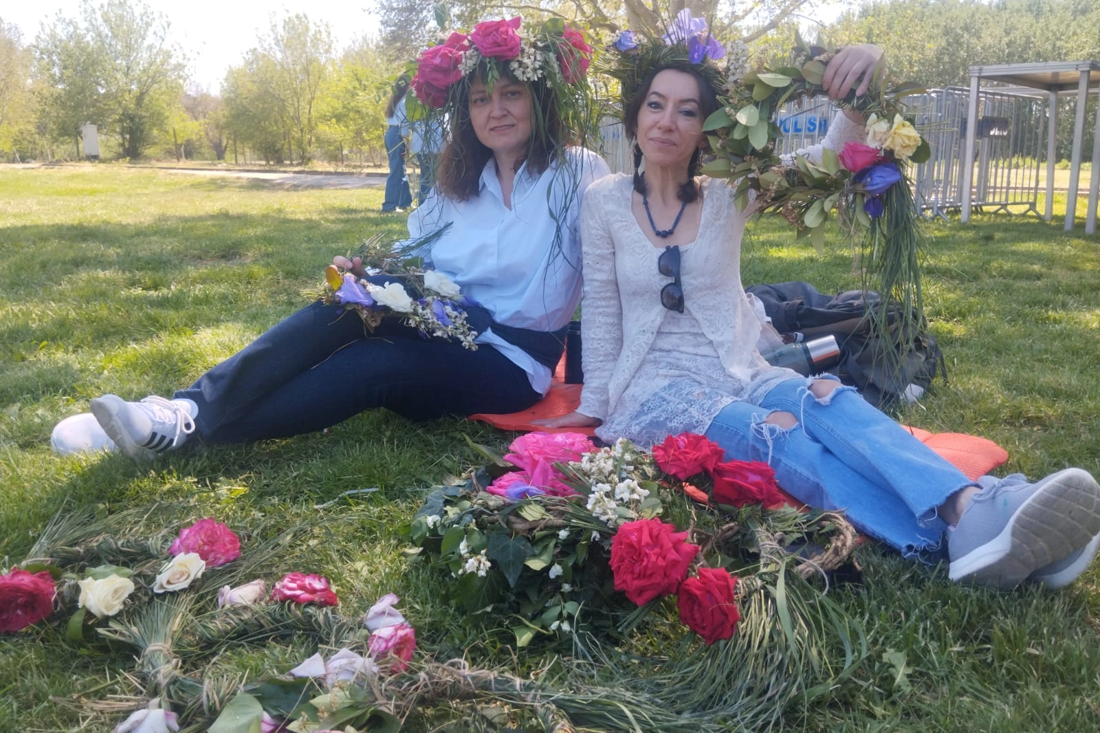 Edirne’de bugün başlayan Kakava ve Hıdırellez Şenlikleri’ne katılan iki sanatçı, baharın gelişini doğadan topladıkları çiçek, sarmaşık ve otlardan yaptıkları taçlarla kutluyorlar. Kakava için doğadan topladıkları ürünlerle bir gün önceden taçları yapmaya başladığını söyleyen Sanat ve Doğa Eğitmeni Sevda Mutlu; “Kakava’da ve bölgemin tüm sanat etkinliklerinde gerek katılarak gerek sanatsal, doğayla bütünleşen yaptığım taçlarla dahil oluyorum. Dün ormanda topladığım doğal sarmaşıklardan, güllerden, otlardan akşam gece yarısına kadar taçları yaptım. Gelen misafirlerimizin başlarında taçlansın. Bunlar geleneksel baharı kutlama, bahara, doğaya teşekkür etme ritüelleridir. Dünyanın her yerinde geleneksel taçlar yapılır. En son geçen yıl Letonya’daki Lido festivalindeydim. Bu taç örgülerini onlardan öğrendim. Evrensel, baharın gelişinin kutlandığı ve doğa anaya teşekkürün gerçekleştiği tüm enerji buluşmalarında birbirimizin renkleriyle doğanın ahengiyle buluşuyoruz” dedi.