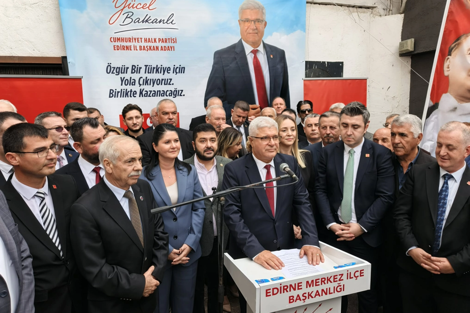 CHP Edirne Merkez İlçe önceki dönem Başkanı Yücel Balkanlı, CHP Edirne İl Başkanlığı'na adaylığını açıkladı. CHP Edirne İl ve Merkez İlçe Örgütlerinin binasının girişinde düzenlenen basın açıklamasına; CHP Yüksek Disiplin Kurulu Üyesi Harika Taybıllı, CHP Edirne Milletvekili Ahmet Baran Yazgan, Edirne Belediye Başkanı Filiz Gencan, CHP Edirne İl Başkanı Oğuz Saç, CHP'li ilçe ve belde belediye başkanları, belediye ve il genel meclisi üyeleri ile partililer katıldı.