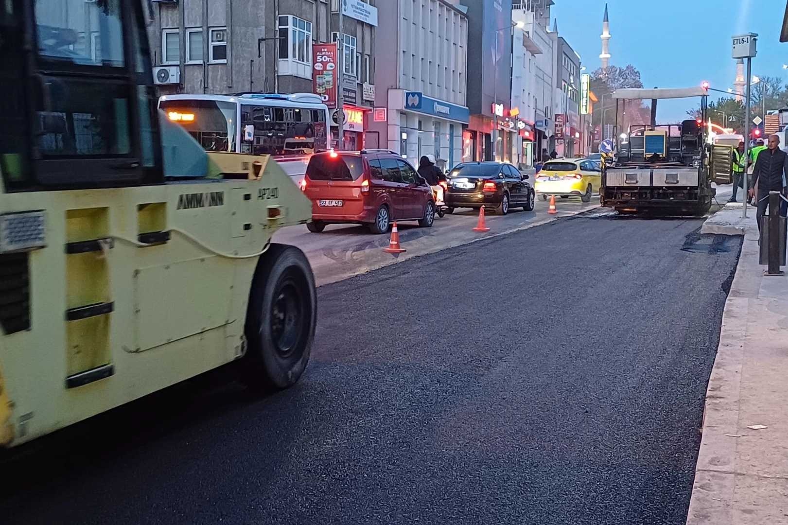Edirne Belediyesi Fen İşleri Müdürlüğü ekipleri, Kaleiçi bölgesinde süren üstyapı çalışmaları kapsamında Bankalar Durağı olarak bilinen noktada asfalt serimi gerçekleştirdi. Yoğun araç trafiğinin bulunduğu bölgede çalışmalar, gün içi yoğunluğu etkilememek amacıyla akşam saatlerinde yürütüldü.