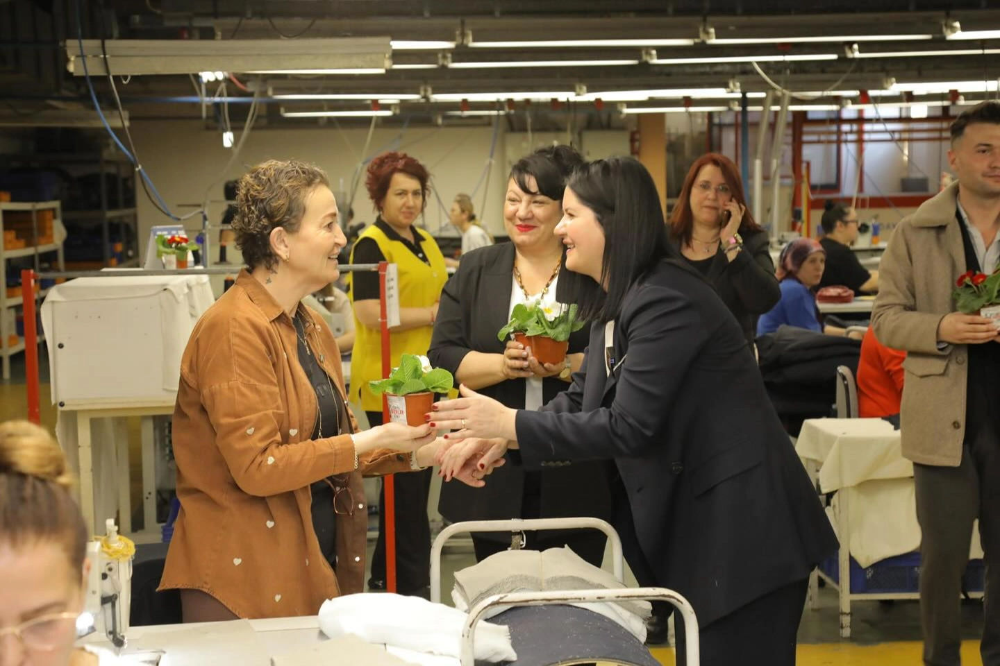 Ziyaret sırasında kadın çalışanlarla sohbet eden Başkan Gencan Akın, onların çalışma hayatındaki deneyimlerini dinleyerek, her alanda kadın emeğinin önemine vurgu yaptı.