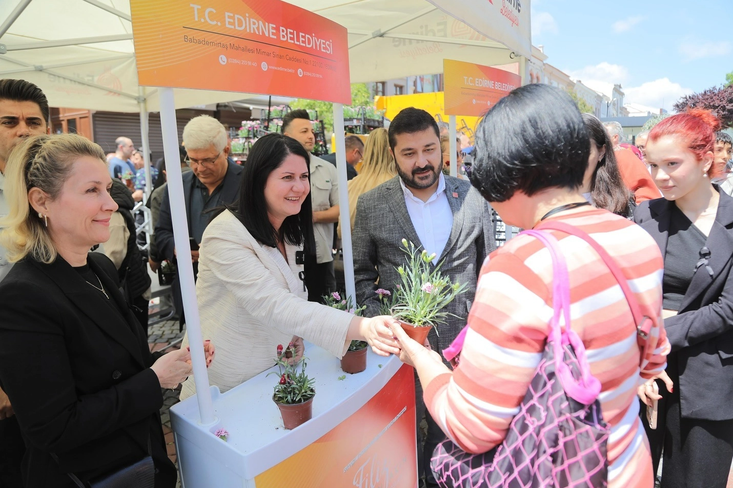 Edirne Belediye Başkanı Filiz Gencan Akın, 11 Mayıs Anneler Günü nedeniyle Saraçlar Caddesi’nde vatandaşlara çiçek hediye etti.