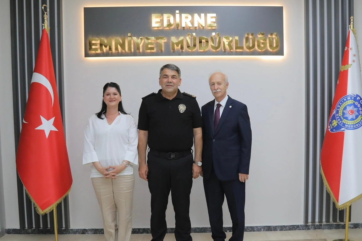 Edirne Belediye Başkanı Filiz Gencan, Trakya Üniversitesi Rektörü Prof. Dr. Mustafa Hatipler ile birlikte Edirne İl Emniyet Müdürü Onur Karaburun’a veda ziyaretinde bulundu.