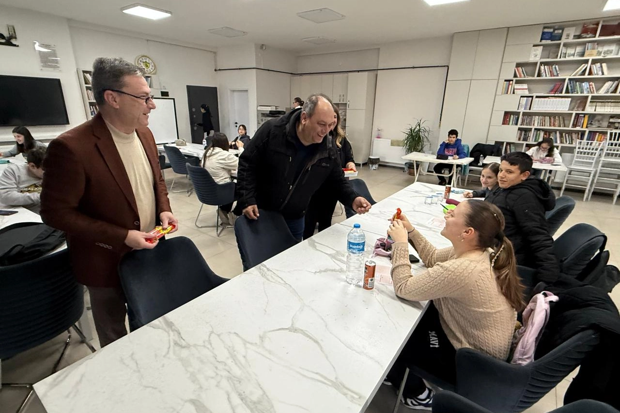 Başkan Özden, ziyaretinin sonunda öğrencilere çikolata ikram ederek başarı dileğinde bulundu.