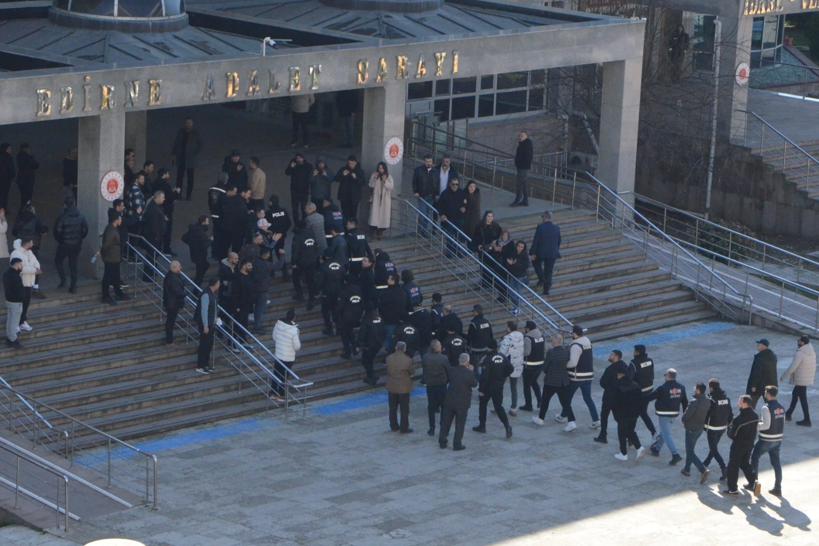 Edirne Cumhuriyet Başsavcılığı tarafından yürütülen soruşturmada; MASAK raporları ve 6 aylık teknik takip sonucunda gözaltına alınan 12 kişi, sağlık kontrollerinin ardından Edirne Adliyesi’ne getirildi. Savcılık sorgusu tamamlanan şüphelilerden Edirne Belediyesi İmar İşleri Müdürü D. A., Belediye Meclisi ve Encümen Üyesi N. M.’nin aralarında bulunduğu belirtilen 8’i tutuklama istemiyle nöbetçi mahkemeye sevk edilirken, diğer 4 şüphelinin adliyedeki işlemleri devam ediyor.