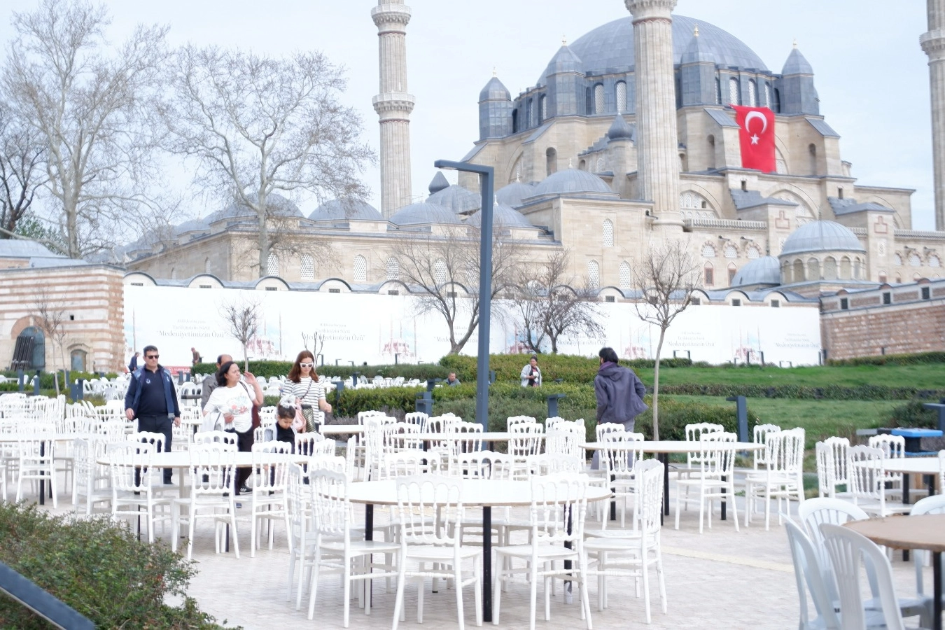 Edirne Belediyesi tarafından geleneksel hale getirilen ve Kadir Gecesi'nde Selimiye Camii meydanında kurulan alanda binlerce kişinin katılımıyla gerçekleştirilen iftar programı sayılı saatler kaldı. Edirne Belediyesi personeli tarafından saatler öncesinden alana taşınan masa ve sandalyeler belirli aralıklarla kuruldu. Belediyenin yemekhanesinde hazırlanarak paketlenen yemekler, meydana taşınacak. 2 bin kişinin katılacağı şekilde hazırlanan program için ayrıca mahalle muhtarlıkları önünden araç da kaldırılacak.