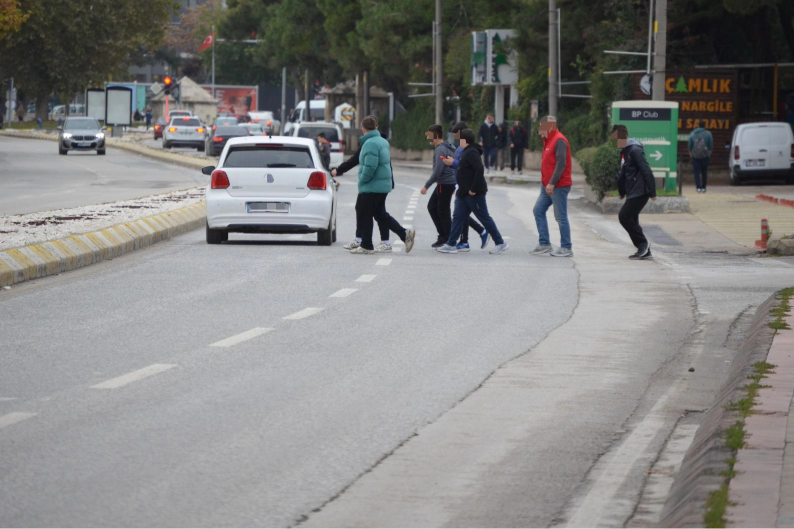 Öğle arasında yemek yemek için yolun karşısına geçmeye çalışan öğrenciler, yoğun araç trafiği nedeniyle zaman zaman zor anlar yaşıyor. Araçların hızla seyrettiği noktada sık sık tehlikeli görüntüler oluşurken, bölgedeki sürücüler de ani duruşlarla kazaları önlemeye çalışıyor.