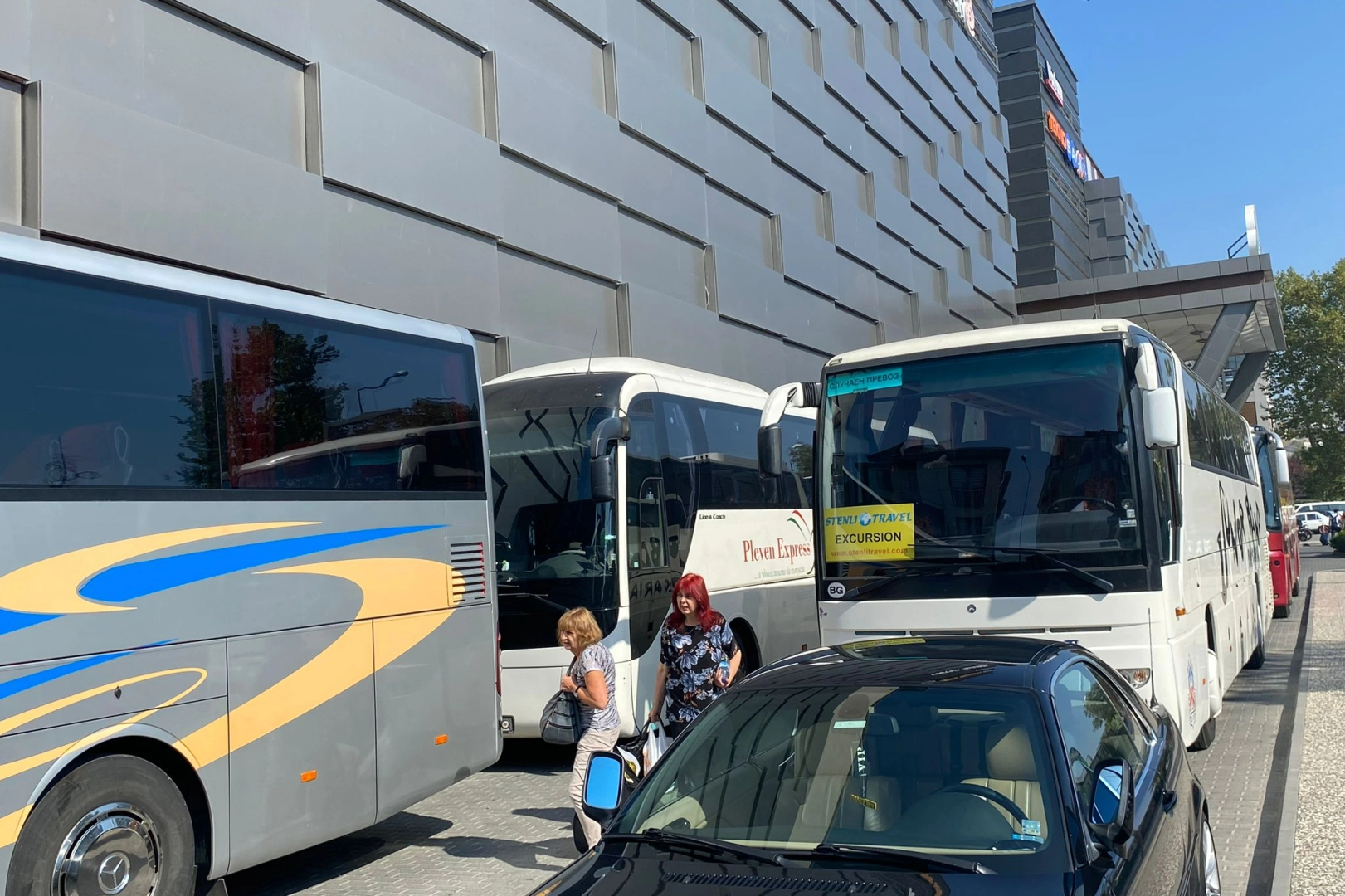 Edirne’de bir alışveriş merkezinin önünde park eden Bulgaristan plakalı otobüsler ve araçlar, dikkat çekici bir görüntü oluşturdu.