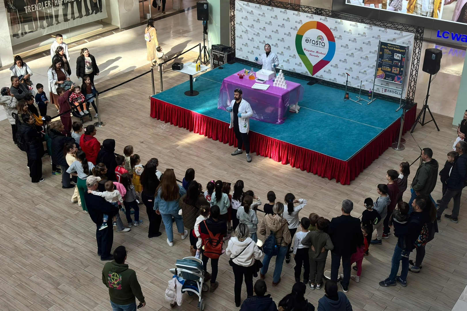Edirne’de bir alışveriş merkezi çocuklara yönelik dopdolu bir şov etkinliği düzenledi. Şov kapsamında kuru buz deneyi, kuru buz ile mum söndürme, kuru buz ile baloncuklar yapma, patlamayan balon, yanmayan alev ve nişasta ile alev şov ile fil dişi deneyi etkinleri gerçekleştirildi.