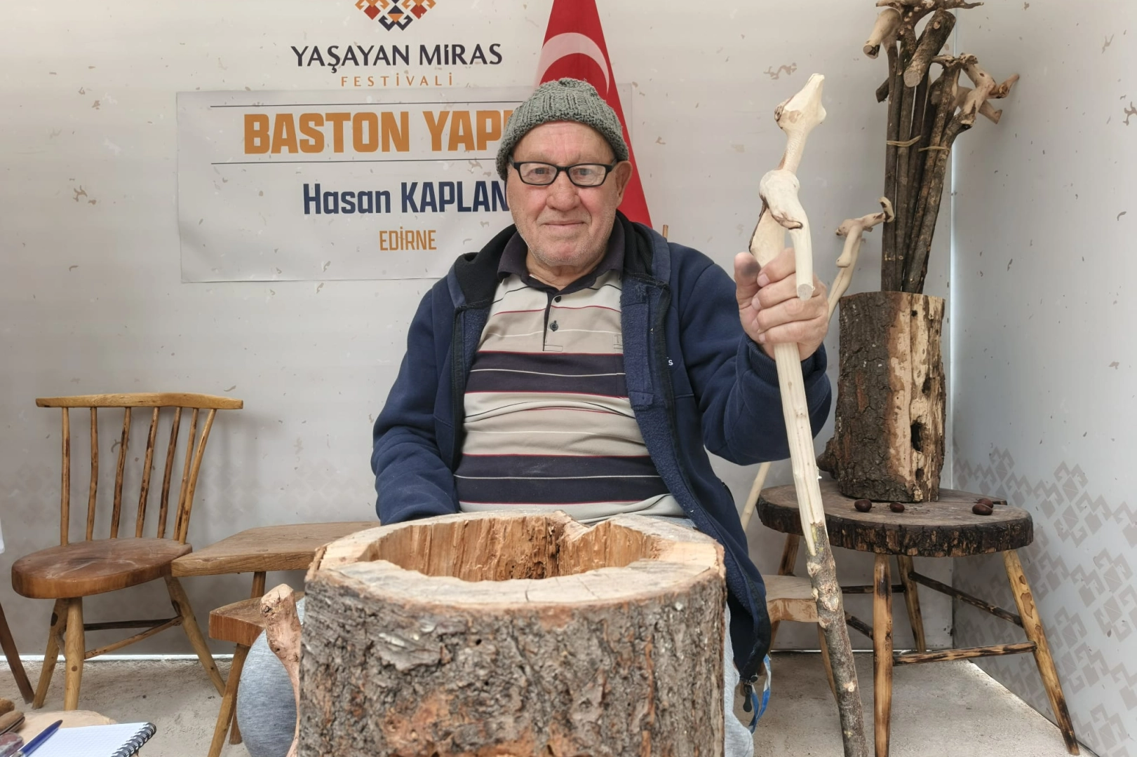 Edirne’de Kültür ve Turizm Bakanlığı’nın destekleriyle Edirne Valiliği tarafından 25-28 Eylül tarihlerinde düzenlenen Yaşayan Miras Festivali’ne katılan el emeği baston yapımı emekçisi Hasan Kaplan, standında yaptığı bastonların yanı sıra geçmişten günümüze ulaştırdığı sanatına verdiği değerle dikkat çeken isimlerden biri oldu.